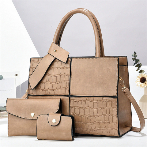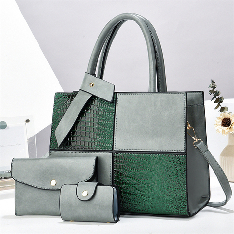 حقيبة جديدة عصرية لامعة من الجلد الصناعي بنمط التمساح من ثلاث قطع حقيبة يد للكتف متقاطعة مع الجسم بسعة كبيرة